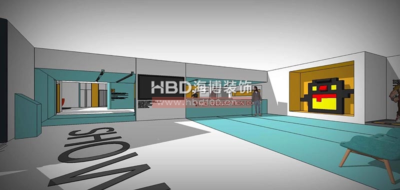 以原有風(fēng)格延伸,地、墻面大體不變。加入現(xiàn)代元素局部裝飾,使大堂層高空間感提升。為了體現(xiàn)客戶的朝陽行業(yè)特性,海博裝飾的設(shè)計從入口開始就牢牢抓住人們的眼球,表現(xiàn)出鮮明的企業(yè)形象,讓人過目難忘。好似一個精靈活躍在整個空間里,跳躍,靈動,充分適用于公司的需求。